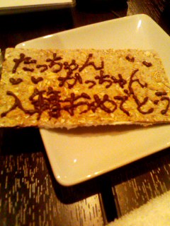 で、このプレートです、『たっちゃん、かっちゃん入籍おめでとう』